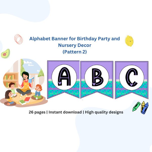 Alphabet Banner for Birthday Party and Nursery Decor (Pattern 2)