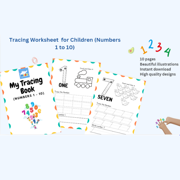 Tracing Worksheet for Children Numbers 1 to 10 Printable Instant Download
